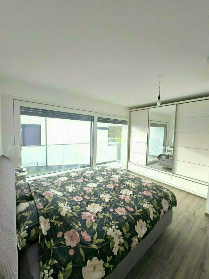 - rez-de-chaussée :hall d'entrée, cuisine bien équipée ouverte, living et salle à manger avec des grandes baie vitrées donnant vers grand jardin privatif clôturé et balcon aussi, une chambre ou bureau et WC séparée,