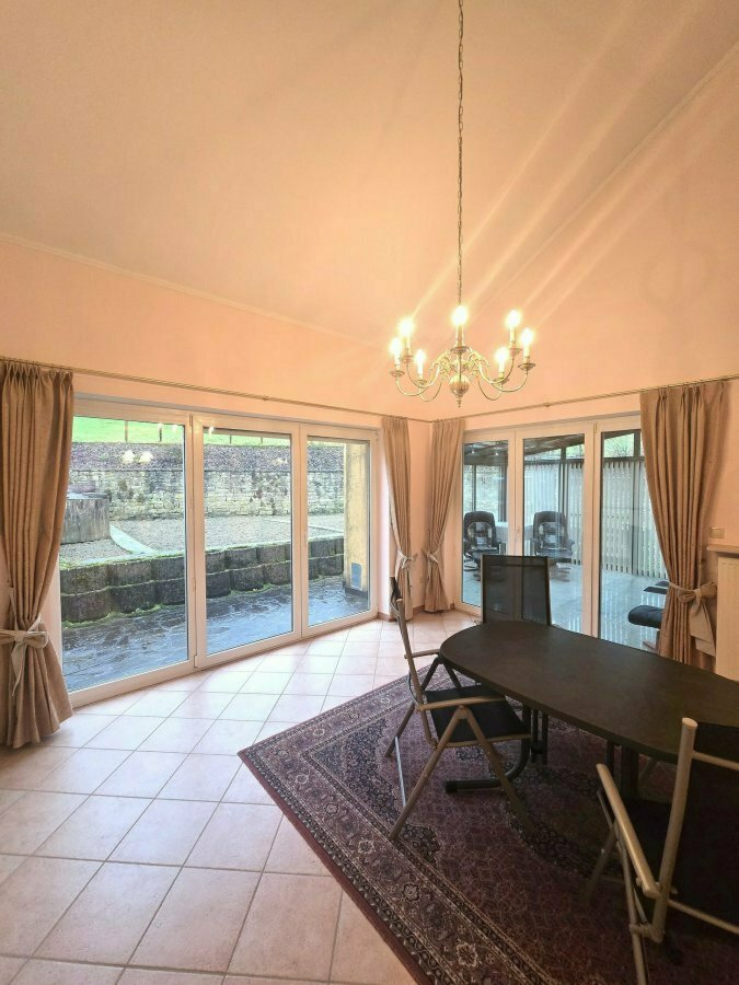 Extérieur: - spacieuse terrasse avec coin jardin / potager. Atouts: - Châssis PVC et fenêtre double vitrage - Porte en chêne massif - Feu ouvert et poêles à bois - Véranda avec poêle à bois équipé d'un toit ouvrant avec marquise électrique