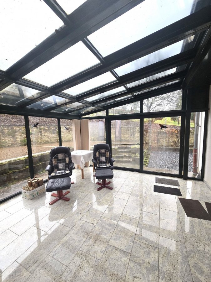Extérieur: - spacieuse terrasse avec coin jardin / potager. Atouts: - Châssis PVC et fenêtre double vitrage - Porte en chêne massif - Feu ouvert et poêles à bois - Véranda avec poêle à bois équipé d'un toit ouvrant avec marquise électrique